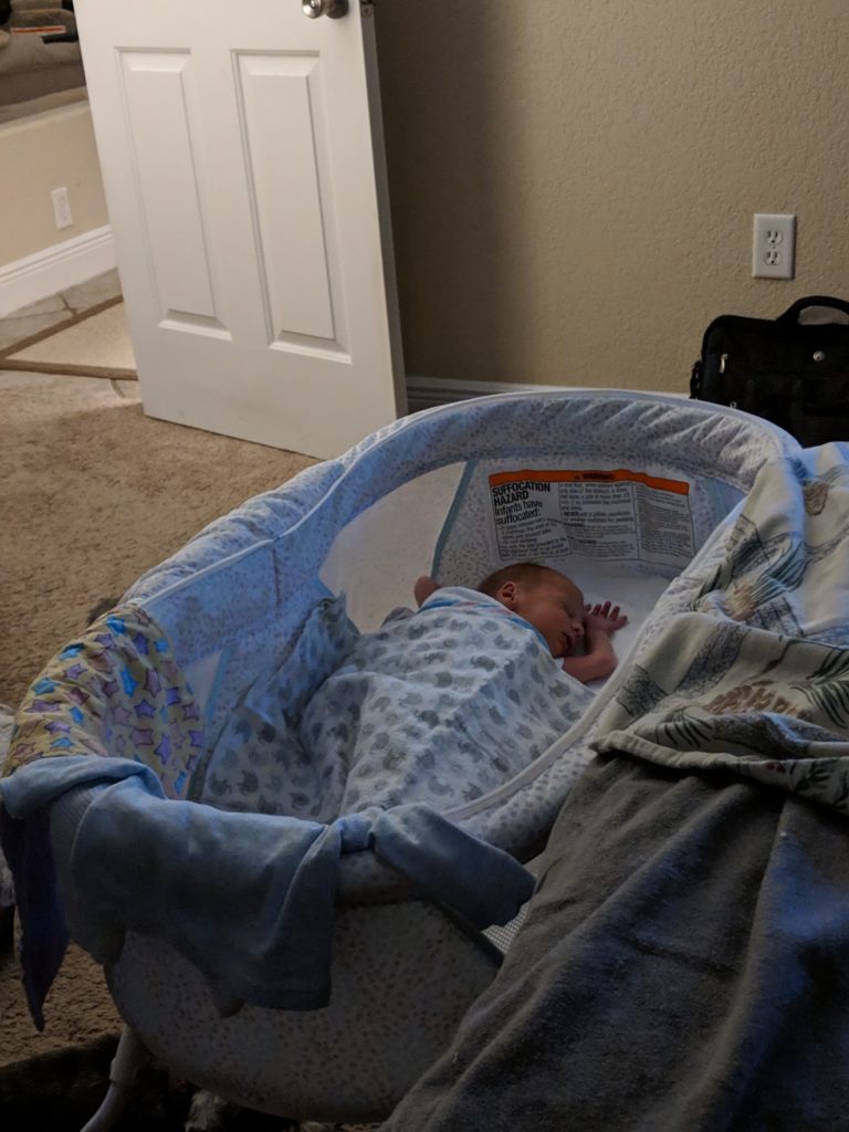 My wife and I decided that we would have the babies sleep in bassinets in our bedroom to start out with. They were so tiny and I was anxious about having them on the other side of the house. The great thing about newborns, they naturally sleep a lot! The first month of our little ones lives they were asleep…. literally, they slept the whole time. We woke them every 3 hours to eat and then they went right back to sleep. Most days they even slept through their bottles, we struggled at times to get them to eat all 3 ounces.